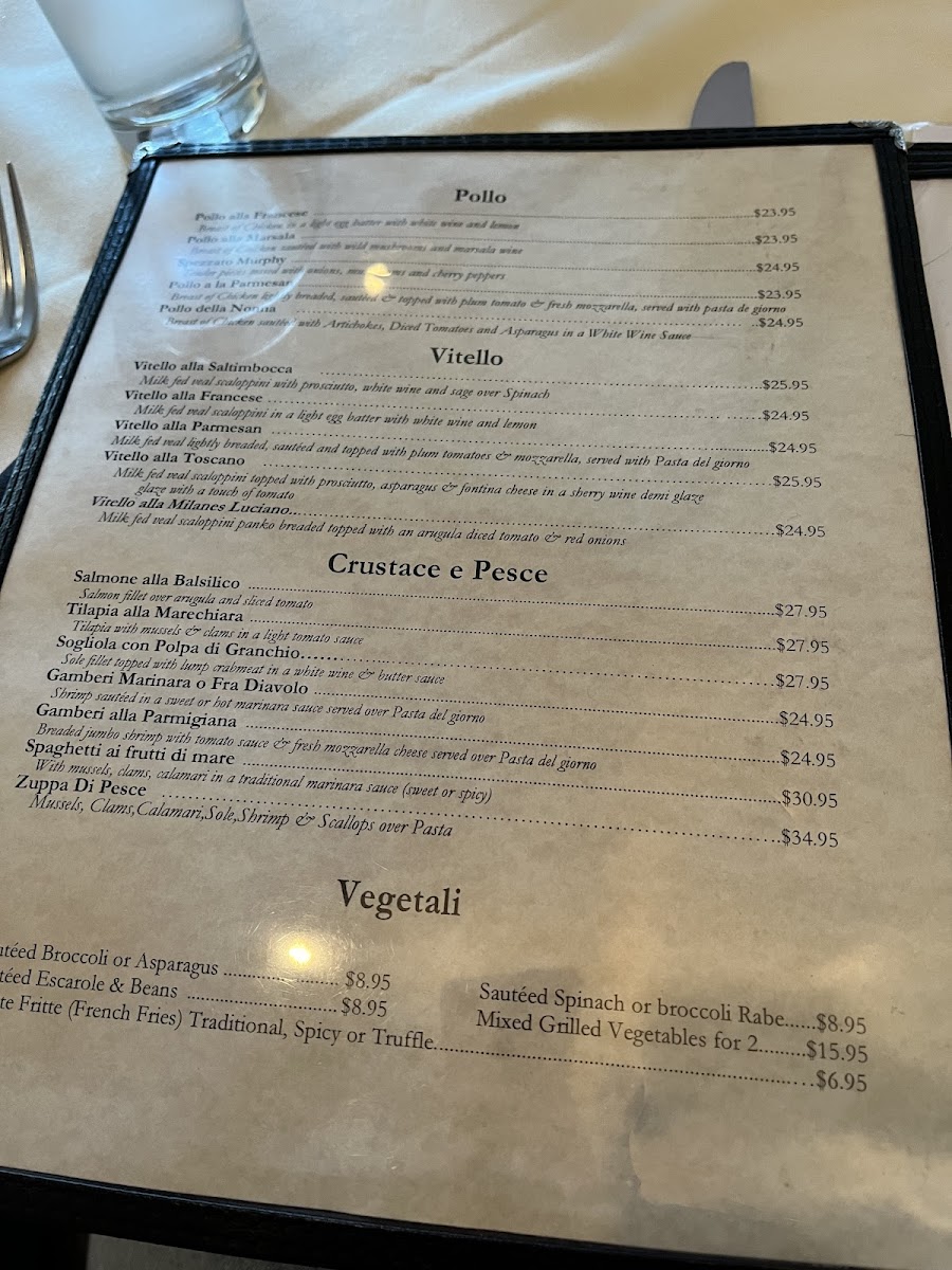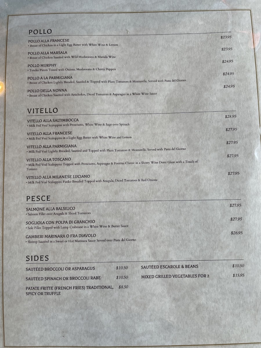 Milk fed veal lightly breaded, sauteed and topped with plum tomatoes & mozzarella, served with pasta del giorno.