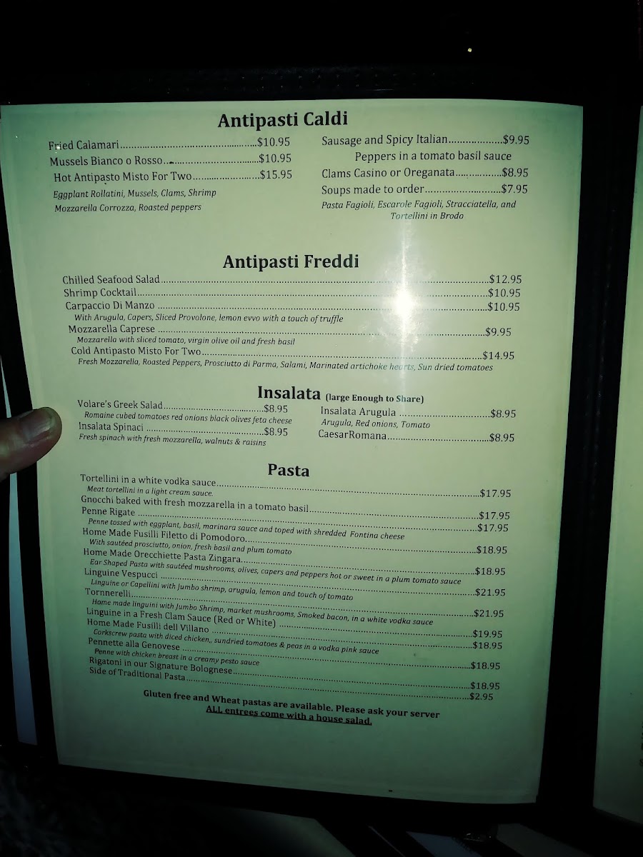 Linguine or capellini with shrimp, arugula, lemon & touch of tomato.